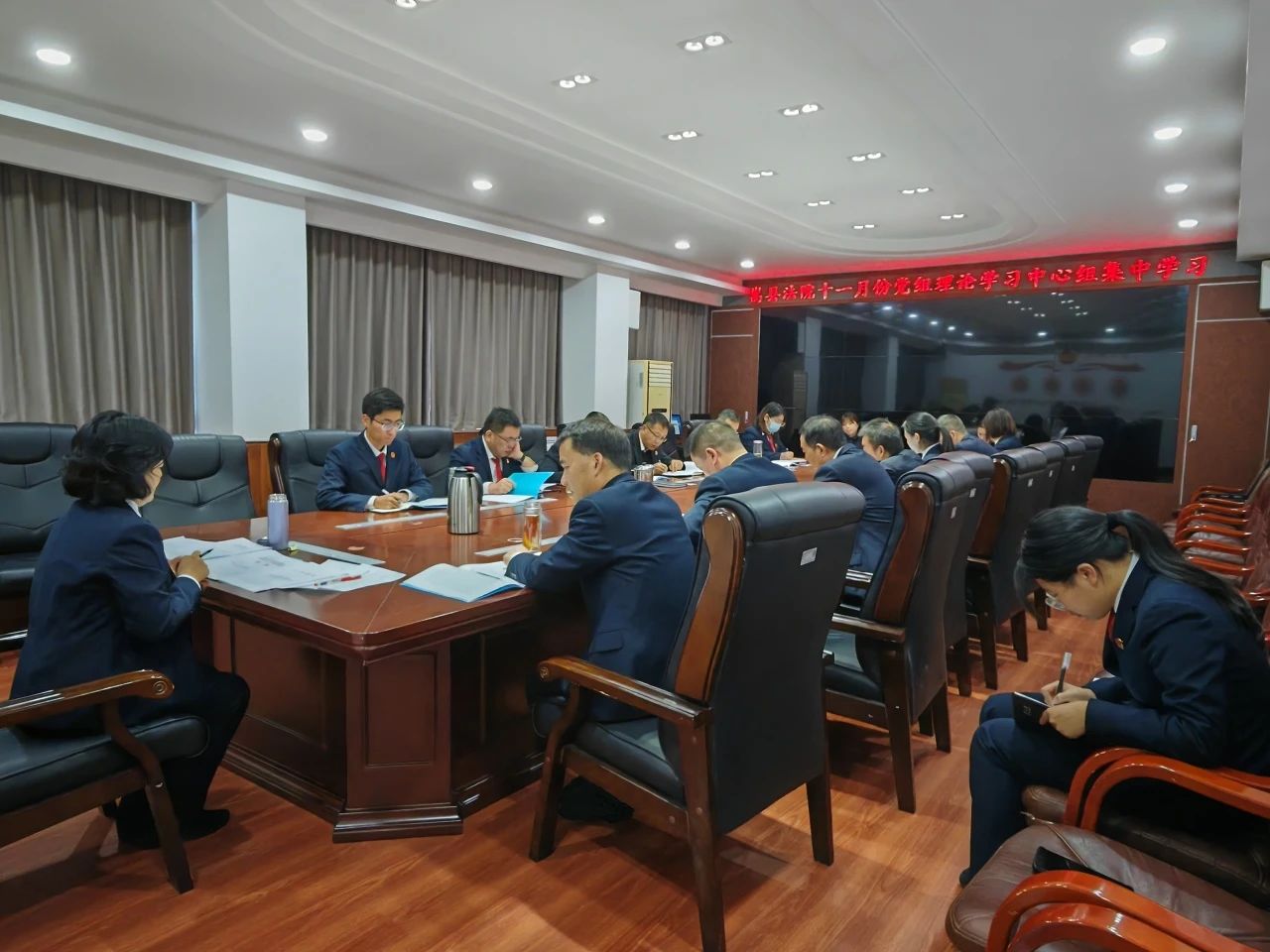 11月27日,嵩县人民法院召开十一月份党组理论学习中心组集中学习会议。全体班子成员、各内设机构负责人及政治部、综合办公室重要岗位人员参加会议。会议由党组书记、院长郑琨主持。