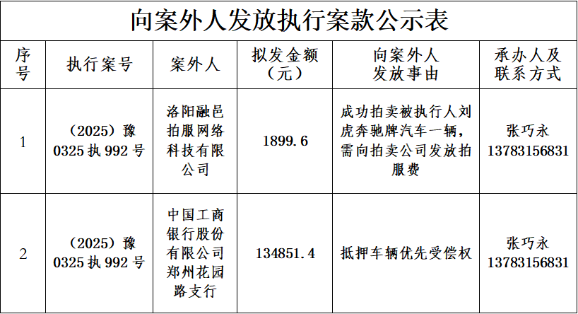 特别提示:公示期满3个自然日后,如无当事人提出异议,则该案款将向案外人发放,监督电话:0379-66335170。