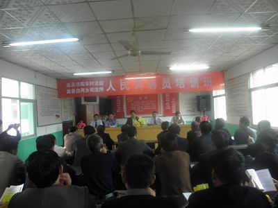 车村法庭为配合木植街、白河两乡党委政府做好迎国庆信访稳定工作,确保辖区和谐稳定,积极与两乡综治办、信访办、派出所、司法所联合,举办培训班,对上述两个乡镇的27名人民调解员进行业务培训。