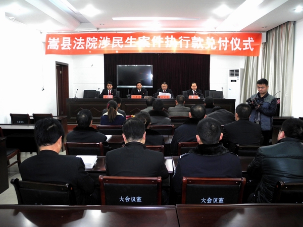 2014年元月28日,嵩县法院召开涉民生案件执行款集中兑付活动,为牛某某等20名申请执行人集中发放执行款10余万元。