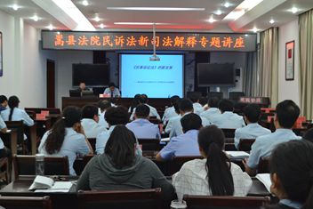 《关于适用〈中华人民共和国民事诉讼法〉的解释》(以下简称民诉法)于2015年2月4日颁布实施,《解释》共23章,552条。为提高法官适用新法能力,确保法官素质适应司法新常态,5月21日,嵩县法院邀请河南科技大学法学院副教授、诉讼法博士杨艺红,利用一整天时间,为干警讲授民诉法新司法解释。全体干警及部分人民陪审员参加了学习。
